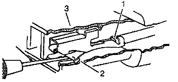 4. Grasp the wire at the back of the connector body and gently pull the terminal (1) from the connector body (3).