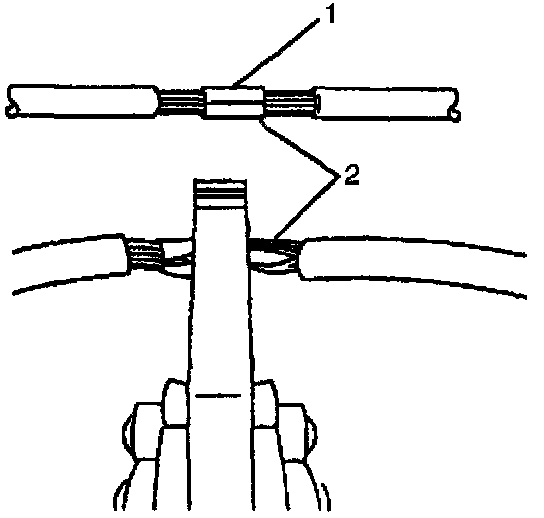 ^ Ensure that each splice is at least 40 mm (1.5 in) away from other splices, harness branches and connectors. This helps prevent moisture from bridging adjacent splices and causing damage.