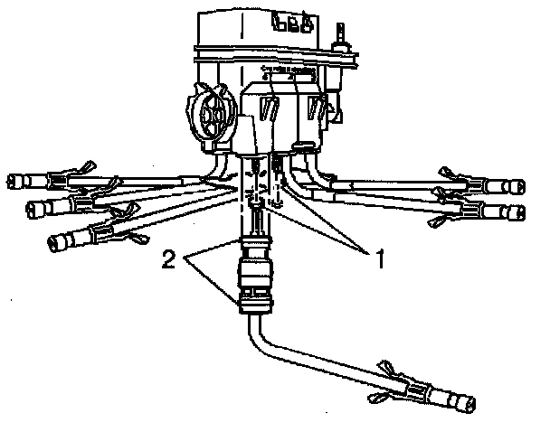 1. Lubricate the new injector O-ring seals with clean engine oil (2)