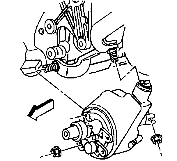 16. Remove the power steering pump front mounting bolts.