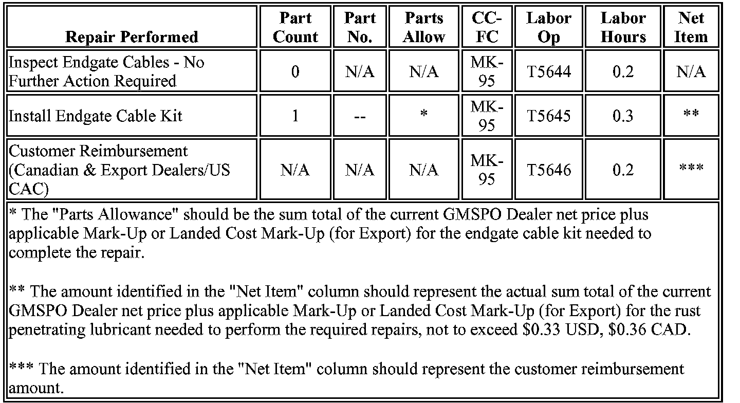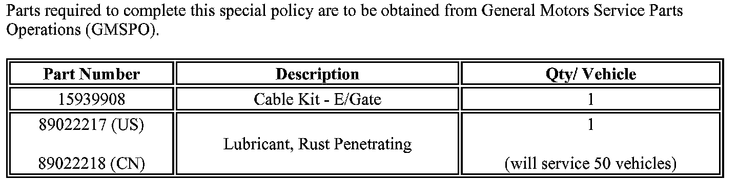 Special Policy Adjustment - Tailgate Support Cable Replacement