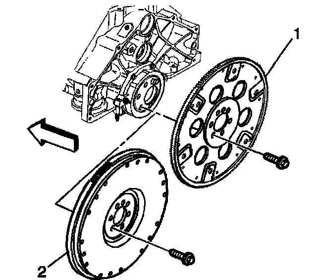 3. Remove the engine flywheel (manual transmission) (2), if applicable.