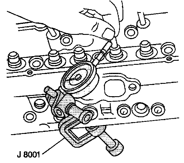 Important: Exhaust valves with excessive valve stem-to-guide clearance must be replaced with the available service valve that has an 0.0774 mm (0.0305 inch) oversize valve stem. The intake valves are NOT available with oversize valve stems. Replace the cylinder head if after using a NEW intake valve in order to measure the valve stem-to-guide clearance, the valve stem-to-guide clearance is not within specifications.