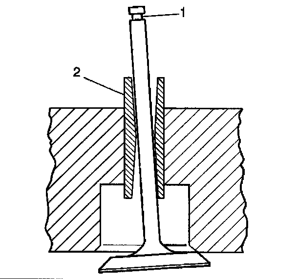2. Improper valve stem (1) to valve guide (2) clearance may cause excessive oil consumption.