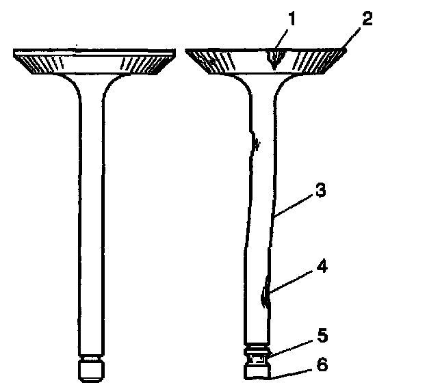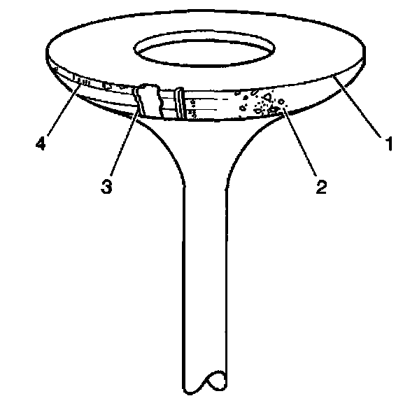 Replace the valve if the edge margin (4) of the valve head is less than 0.79 mm (0.031 inch) thick after grinding.