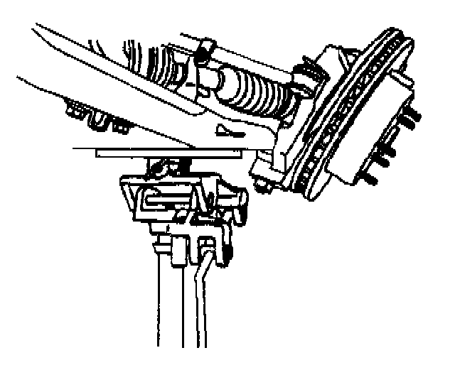 7. Remove the front brake rotors and support the caliper with a piece of wire in order to prevent damage to the brake hose. Refer to Brake Rotor Replacement-Front in Brakes and Traction Control.