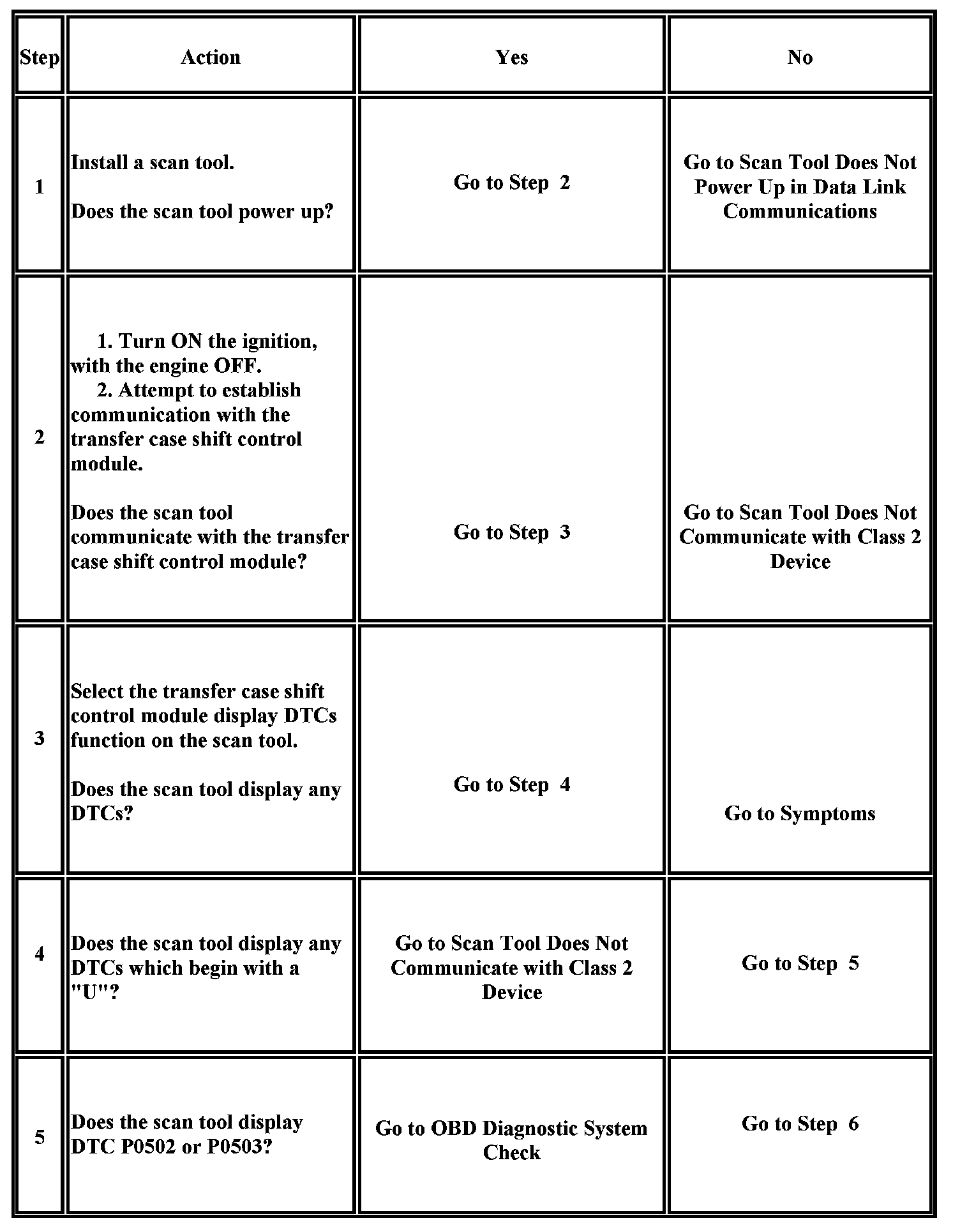 3. Tests for the presents of DTCs. The presence of DTCs indicates that the transfer case shift control module has determined that a fault has taken place within it's system.