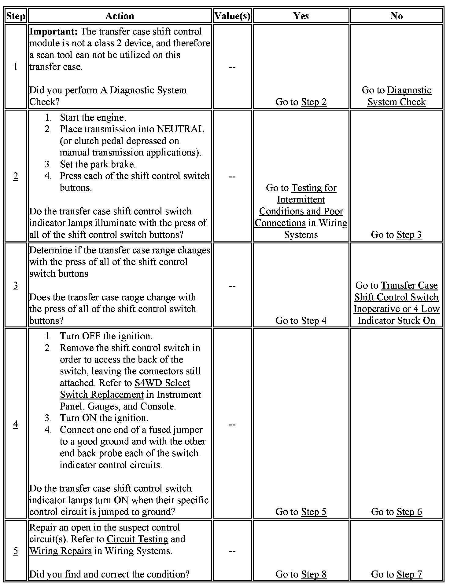 4. This step determines if there is a faulty indicator inside the transfer case shift control switch assembly.