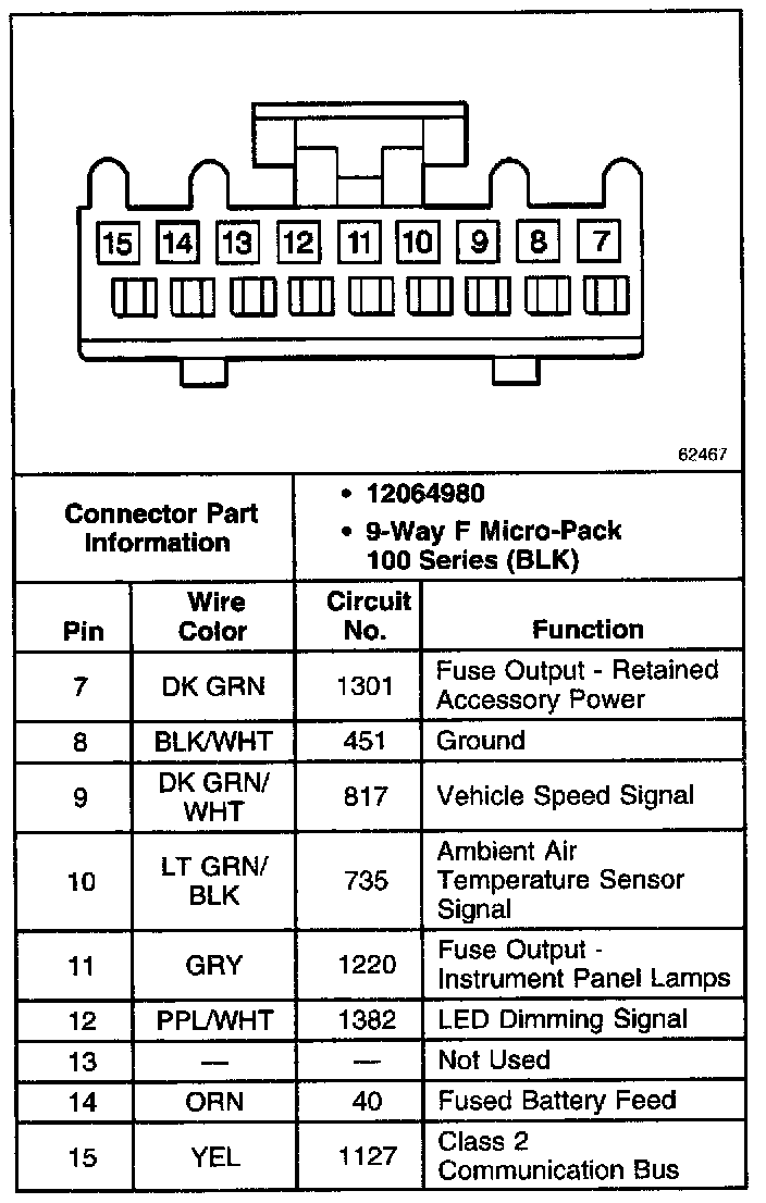 Driver Information Display Module Connector C1(W/Trip Computer)