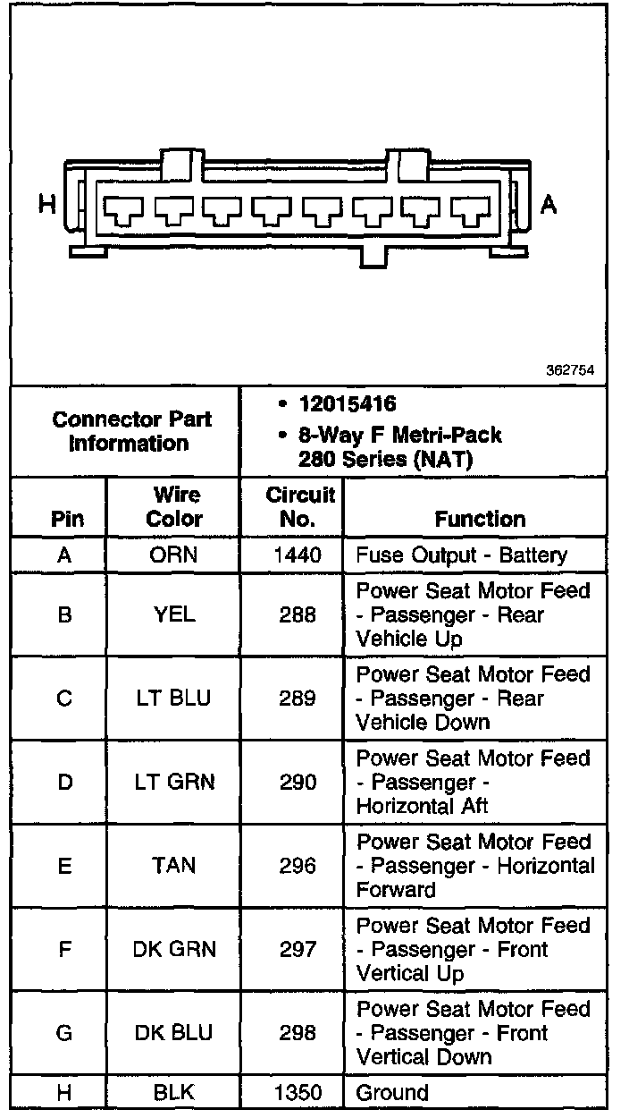 Seat Adjuster Switch,RH Connector C1 (8-Way, Non-Memory)