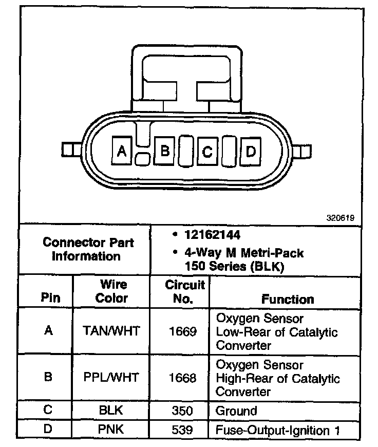 Heated Oxygen Sensor (HO2S) Connector, Bank 1, Sensor 3: