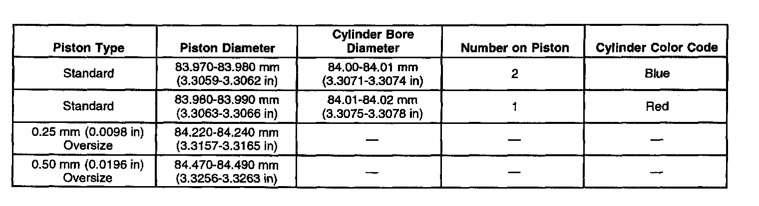 Piston Selection Table