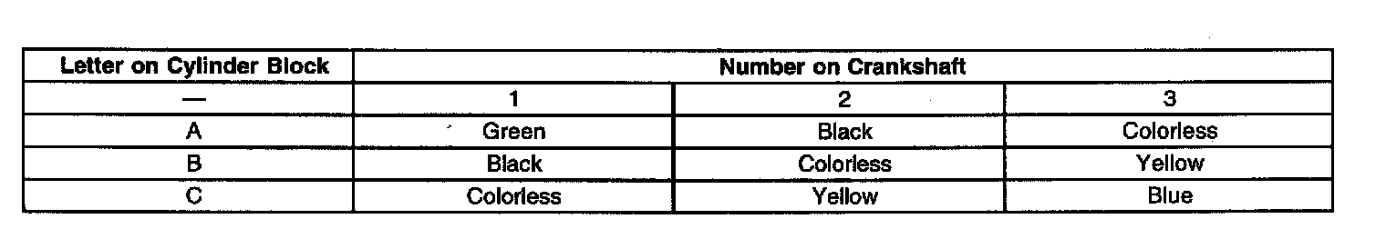 Undersize Main Bearing Selection Table