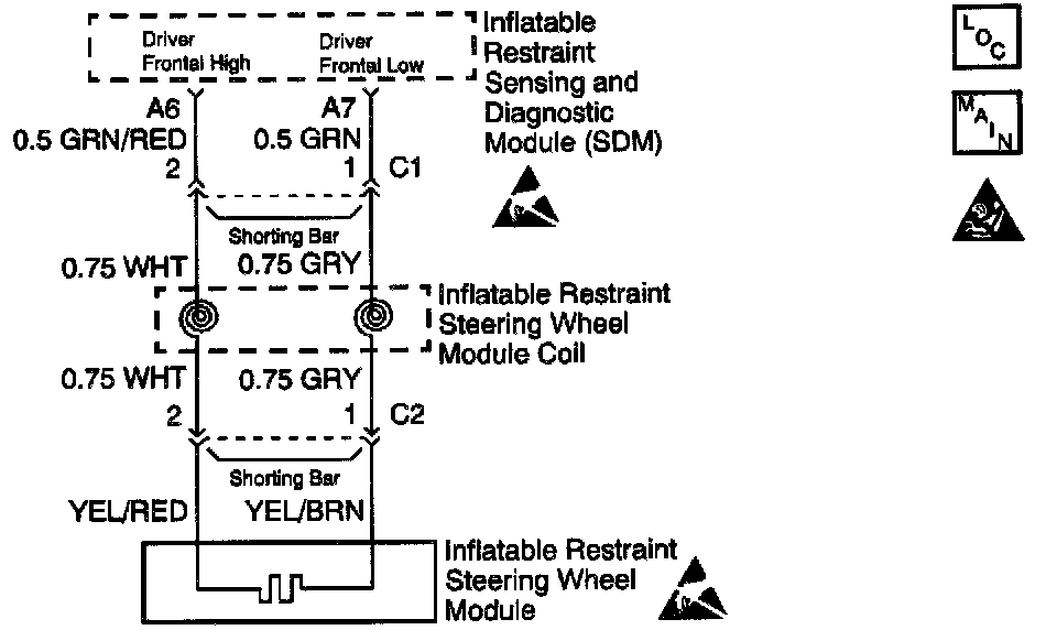 When you first turn the ignition switch to the ON position, the inflatable restraint sensing and diagnostic module (SDM) performs tests to diagnose critical malfunctions within itself. Then the SDM performs the following continuous diagnostic tests on the deployment loops: