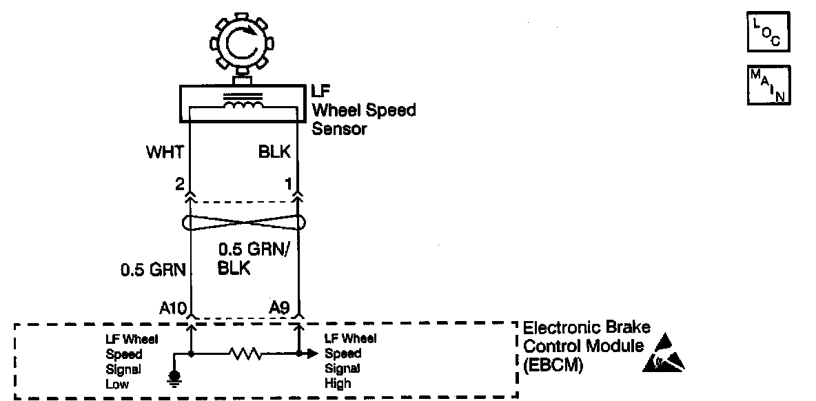 The wheel speed sensor generates an AC signal. The signal is produced when a toothed ring passes the wheel speed sensor. The frequency of the AC signal is proportional to the wheel speed. The EBCM uses the frequency of the signal in order to calculate the wheel speed.