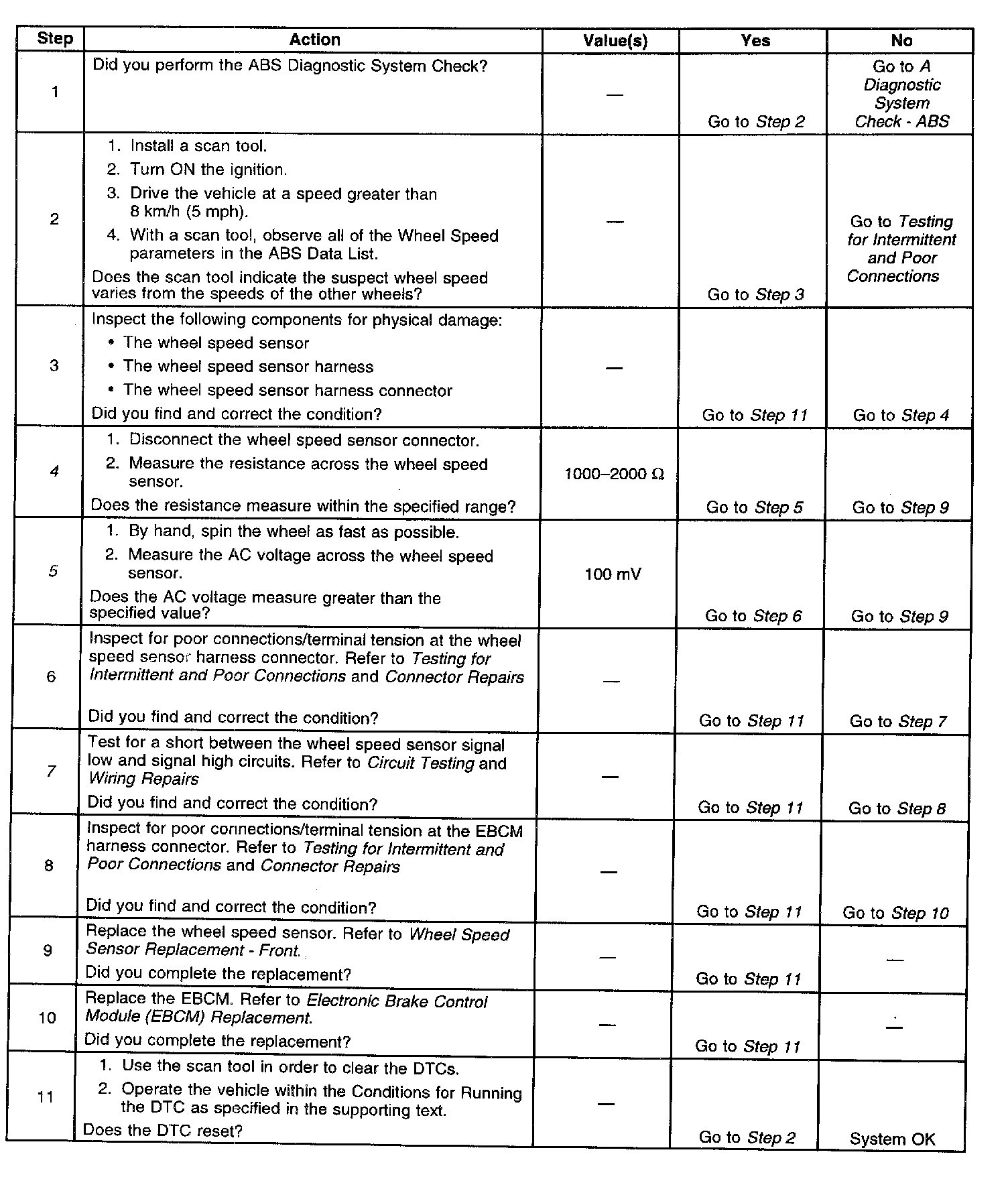 5. This step ensures that the wheel speed sensor generates the proper voltage.