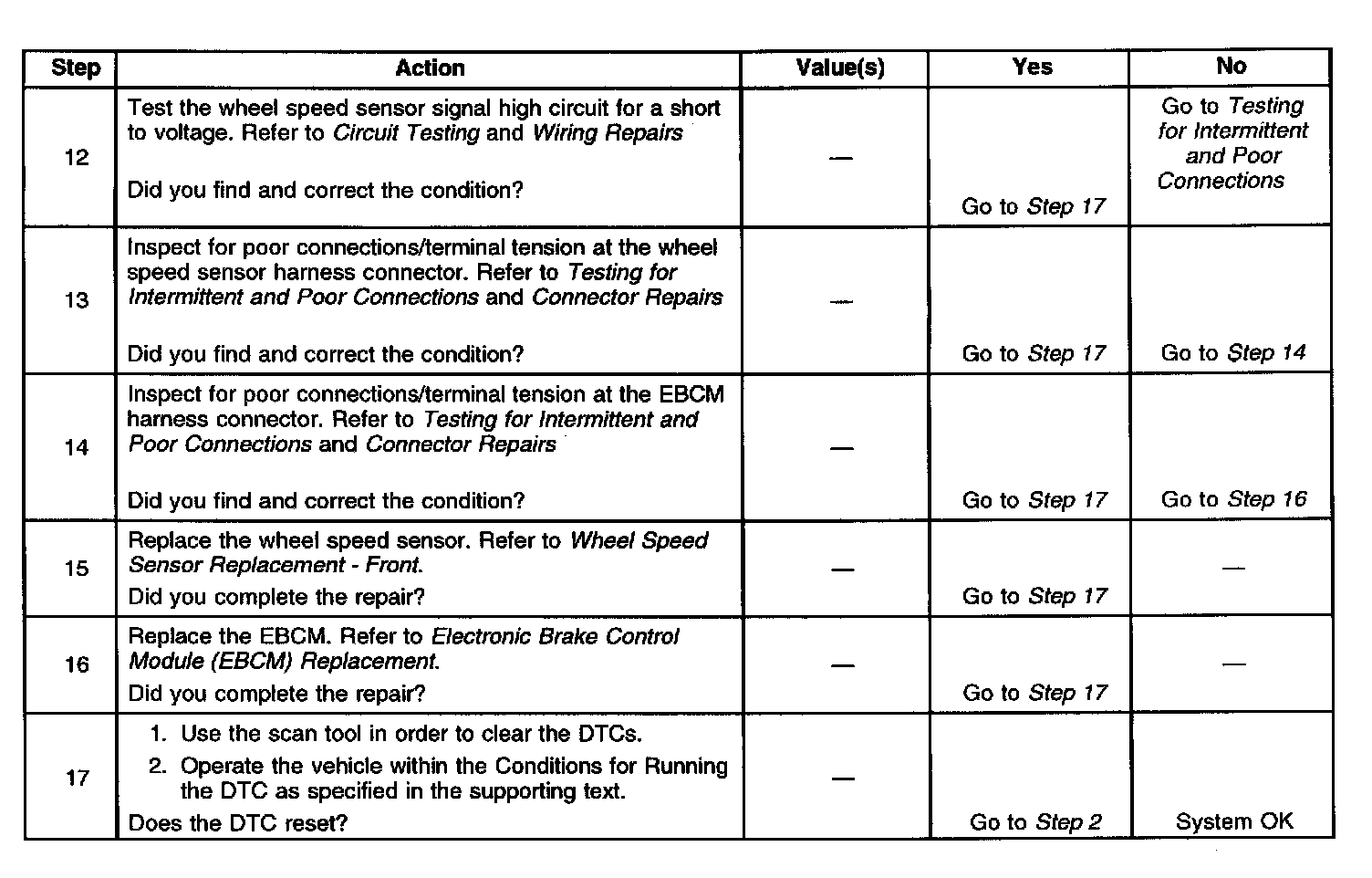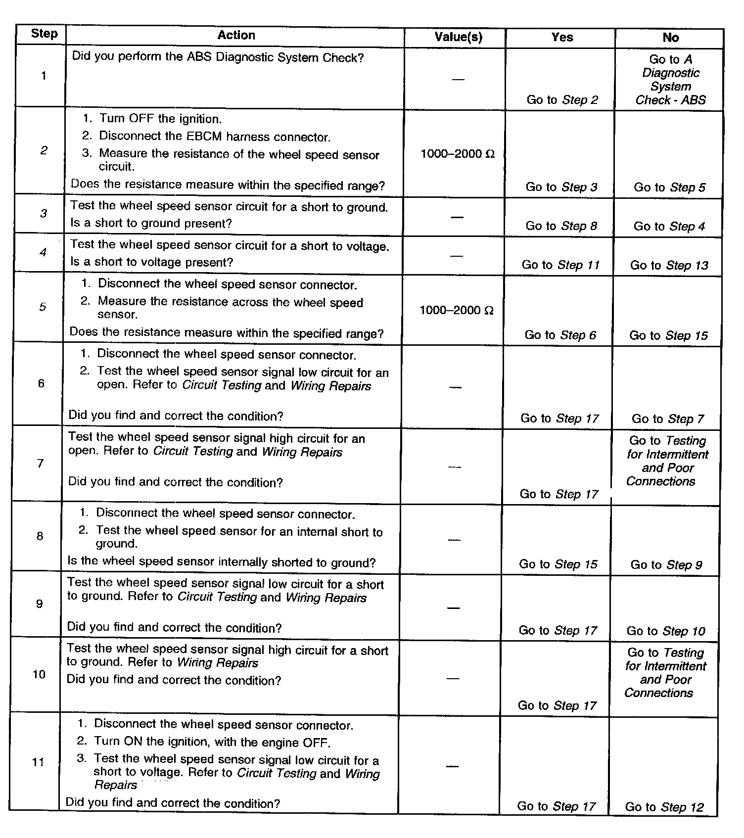 2. This step tests the wheel speed sensor and the wheel speed sensor signal circuits for an open.