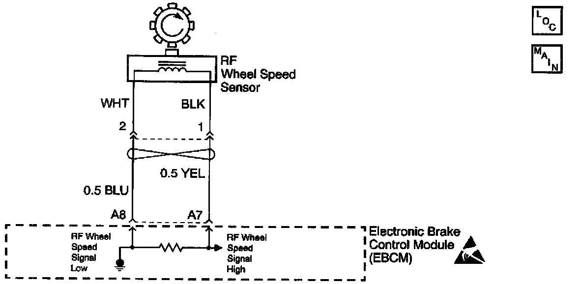 The wheel speed sensor generates an AC signal. The signal is produced when a toothed ring passes the wheel speed sensor. The frequency of the AC signal is proportional to the wheel speed. The EBCM uses the frequency of the signal in order to calculate the wheel speed.