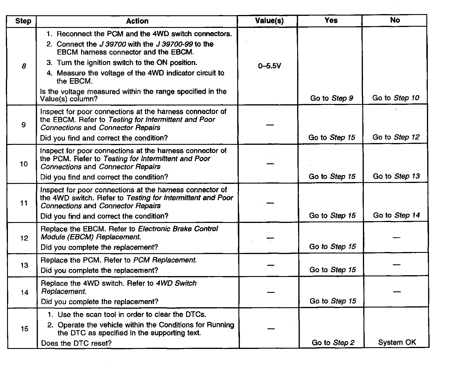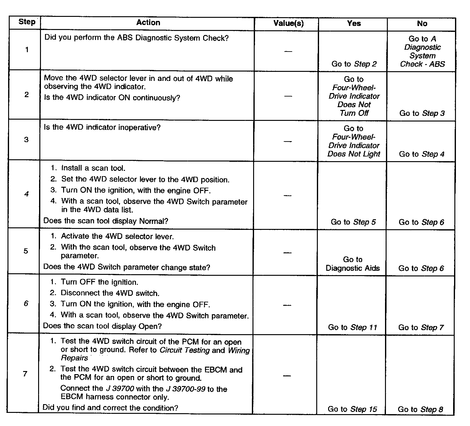 ^ A malfunction exists if the EBCM detects an open in the 4WD Signal circuit.