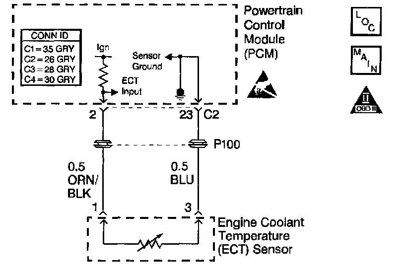 ^ When replacing the ECT sensor, the Temperature to Resistance Value scale may be used to test the sensor at various temperature levels to evaluate the possibility of a shifted and incorrectly calibrated sensor. A shifted sensor may result in poor driveability complaints. Refer to Temperature Vs Resistance.