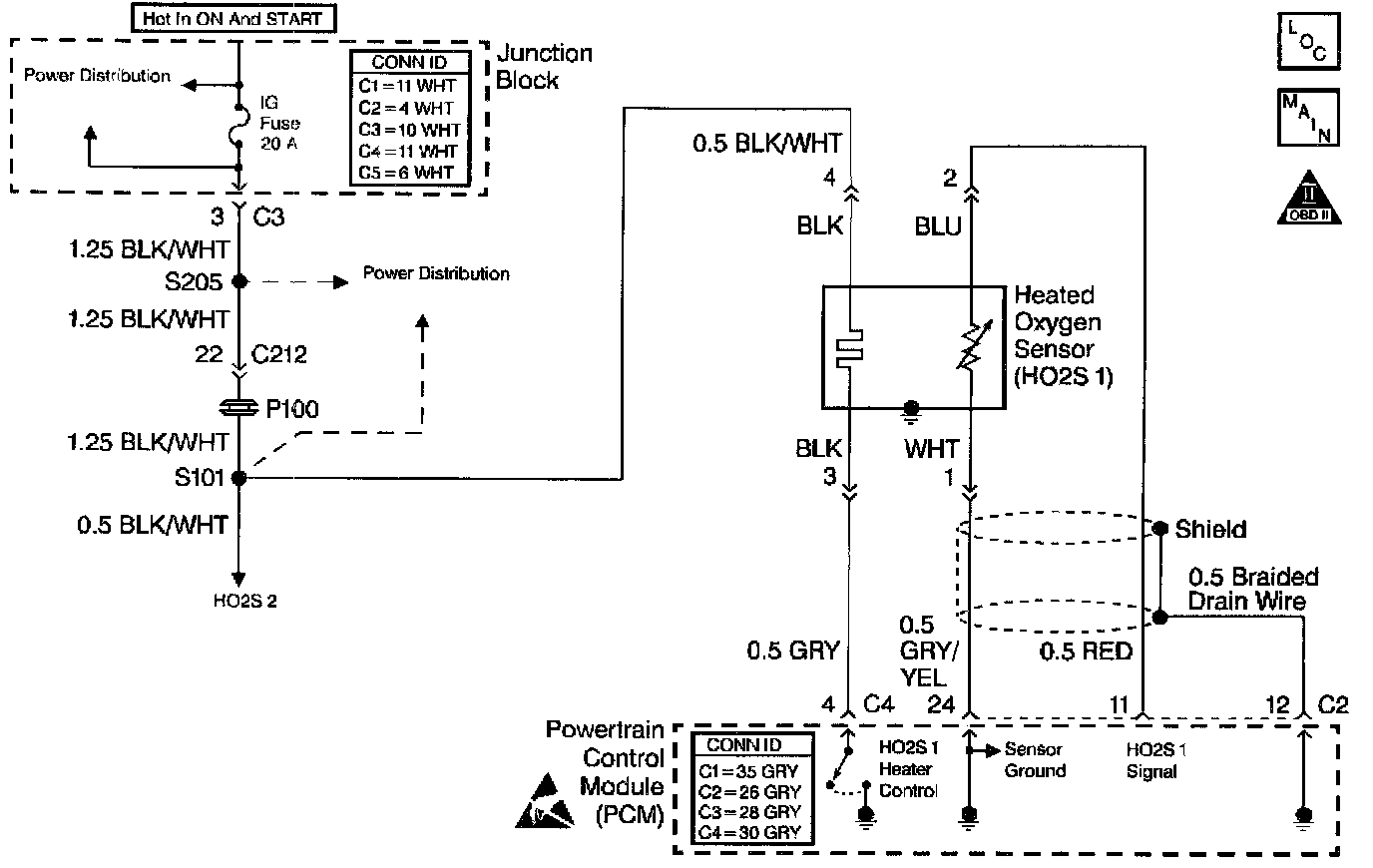 The Heated Oxygen Sensor (HO2S) produces a voltage that varies between 100 mV and 900 mV under normal operating conditions. The Powertrain Control Module (PCM) monitors this voltage and determines if the exhaust is indicating a lean or a rich fuel mixture. If the voltage input at the PCM is about 100 mV the fuel mixture is lean, and if the voltage input is about 900 mV the fuel mixture is rich. The PCM constantly monitors the HO2S signal during Closed Loop operation and compensates for a rich or lean condition by decreasing or increasing the fuel injector pulse width as necessary. If the HO2S 1 voltage remains excessively low for an extended period of time, DTC P0131 will be set.