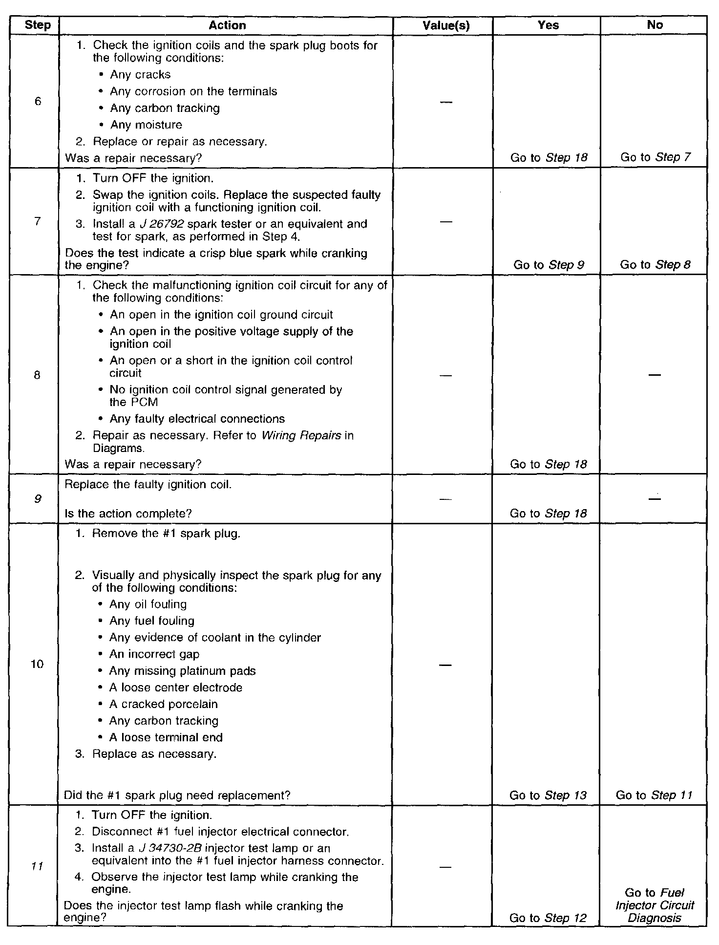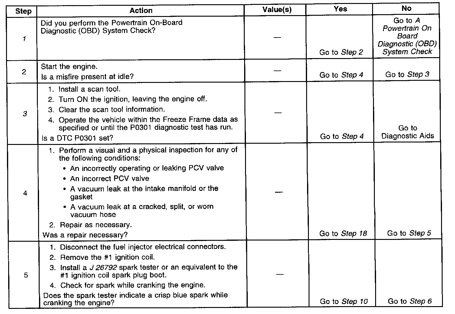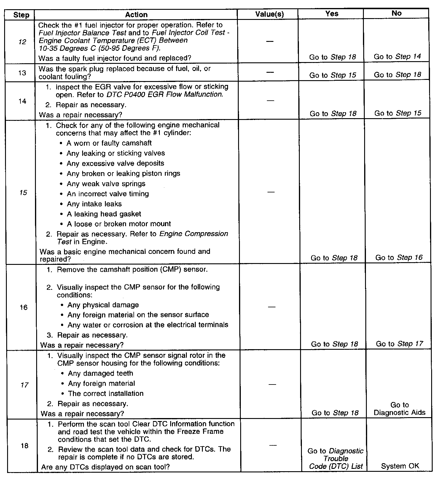 15. This step checks for a mechanical fault as the cause of the misfire condition. A low engine compression and improper valve lash may also cause a rough idling condition.