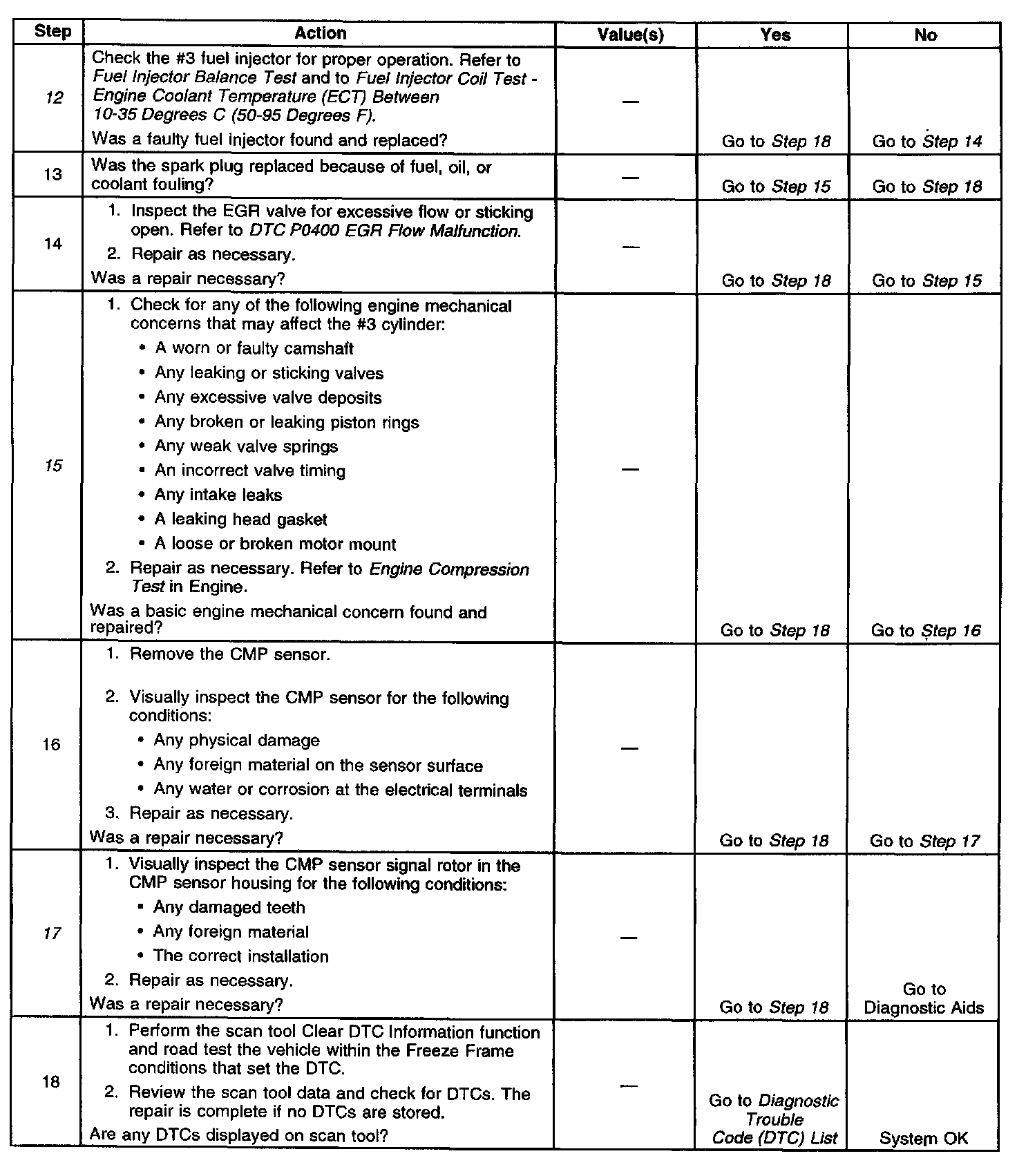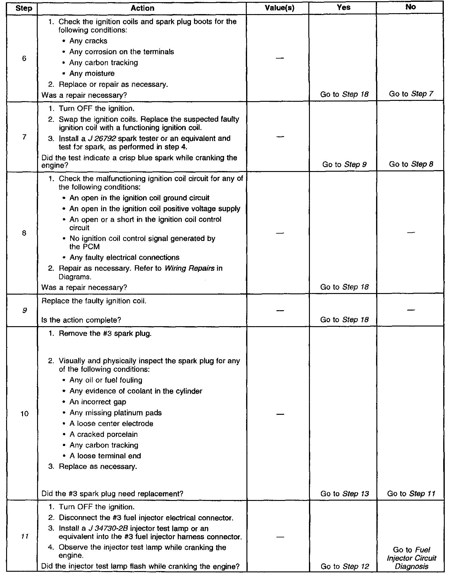 15. This step checks for a mechanical fault as the cause of the misfire condition. Low engine compression and improper valve lash may also cause a rough idling condition.