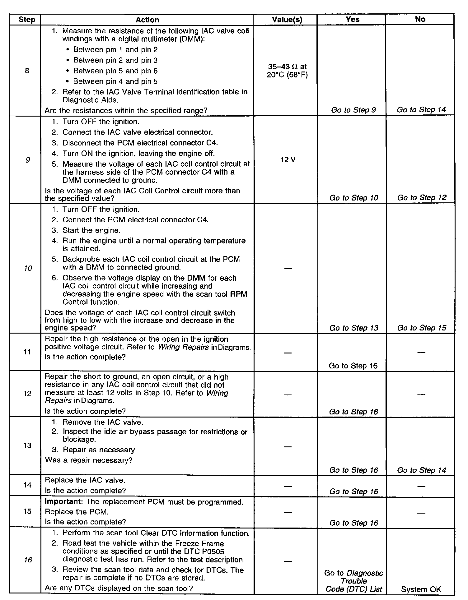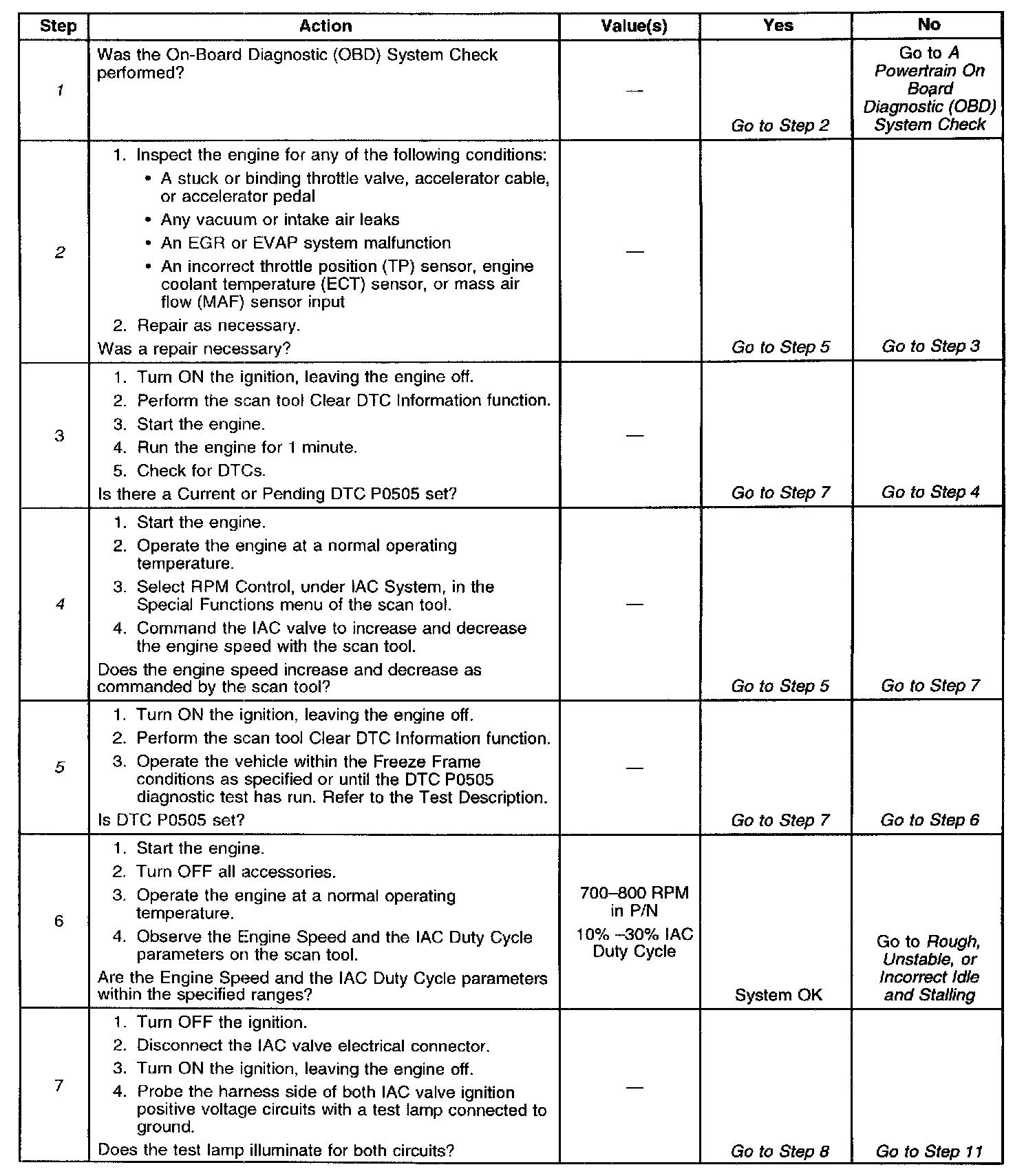 2. This step prompts the technician to check for any condition that can affect the ability of the IAC valve to control engine idle speed. A DTC P0505 can set even if there is no fault in the IAC system. Any condition that can affect the idle speed of the engine must be repaired first, in order to enable proper diagnosis of the DTC P0505.