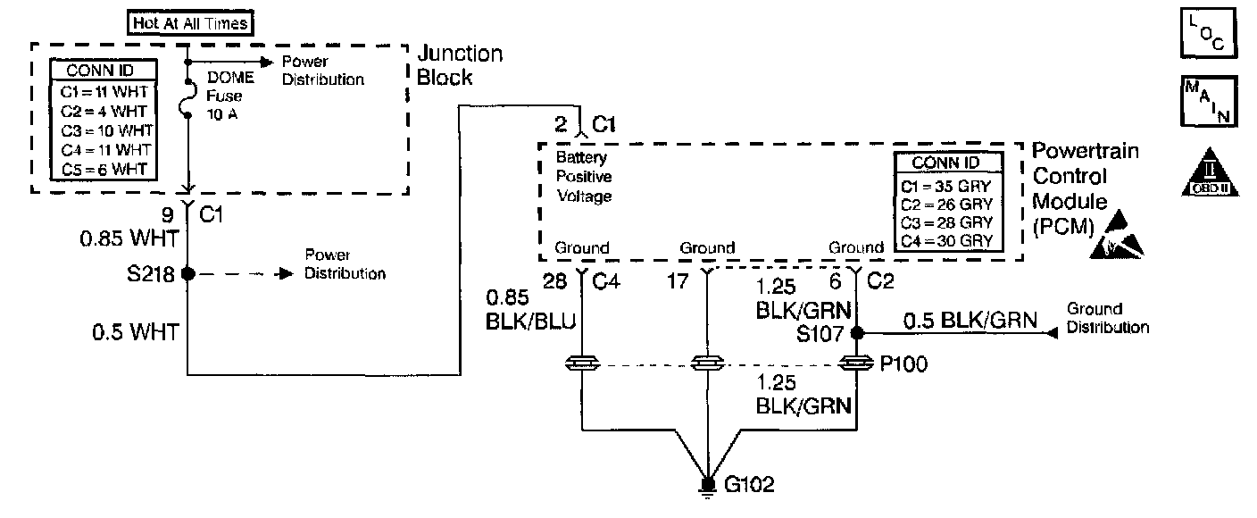Battery voltage is supplied to the Powertrain Control Module (PCM) for the retention of certain long term memory data. Diagnostic trouble codes (DTC) and learned engine control parameters are kept in the PCM memory even when the ignition is OFF. A DTC P1510 sets and the PCM long term memory information is lost when the memory power input circuit voltage is interrupted.