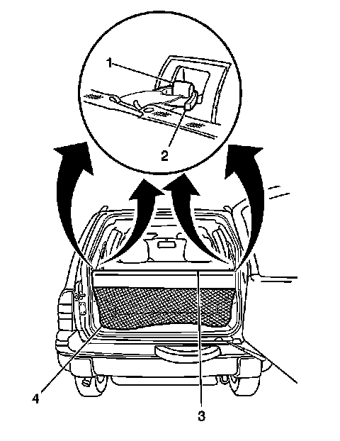 Install the rear security cover (3) to the vehicle. Secure the cover by attaching each of the loops (2) to the respective hook and bracket (1).