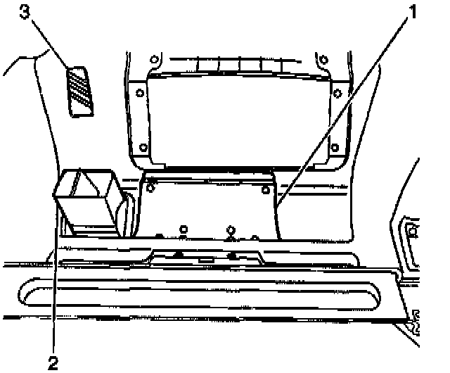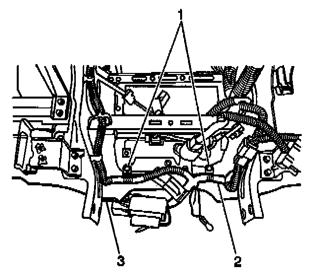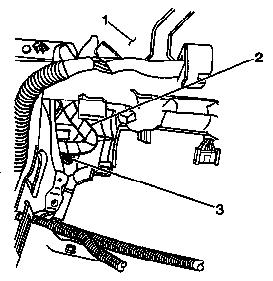 47. Remove the screw (3) from the right side of the rear of the instrument panel (1) which secures the IP wiring harness (2).