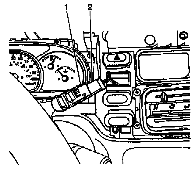 12. Using a taped flat bladed tool, gently pry the hazard warning switch (1) from the instrument panel.