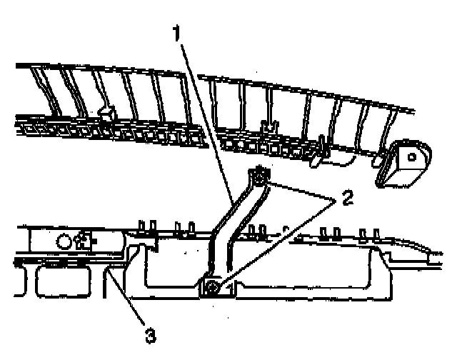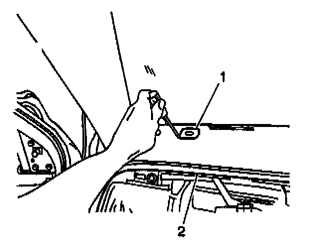 27. Position the hood latch release handle (1) aside in order to gain the necessary clearance to remove the instrument panel (3).