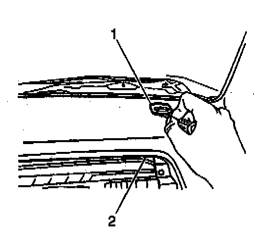 40. Remove the right upper IP bolt trim cover (1) from the instrument panel (2).