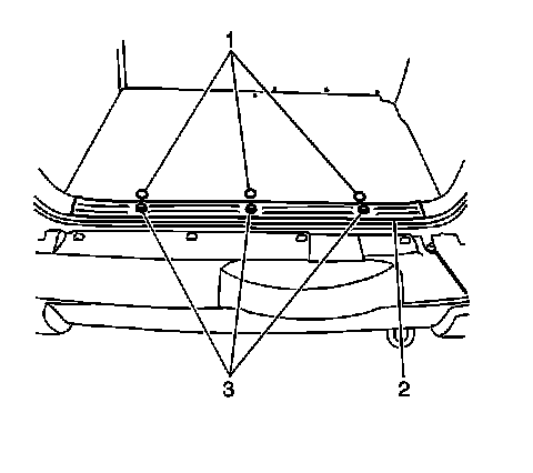2. Remove the 3 bolts (3) which secure the rear floor rear trim plate (2).