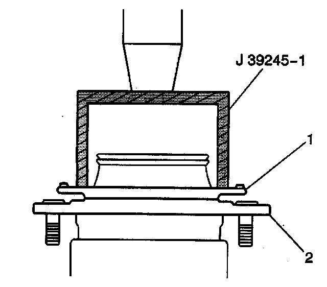 1. Using J 39245, press the ABS reluctor ring (2) onto the wheel hub.