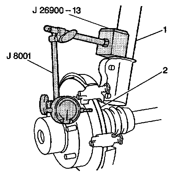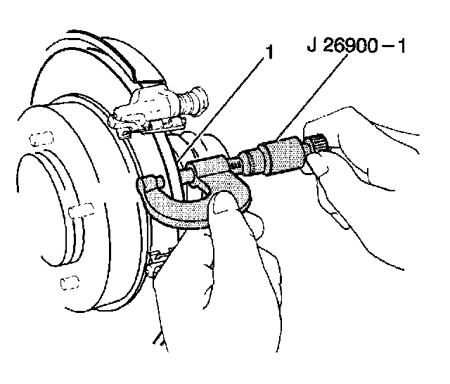 Use the J 26900-1 in order to measure the thickness of the rotor (1). Make the measurements at four or more points around the rotor's circumference. Make all measurements the same distance from the edge of the rotor.