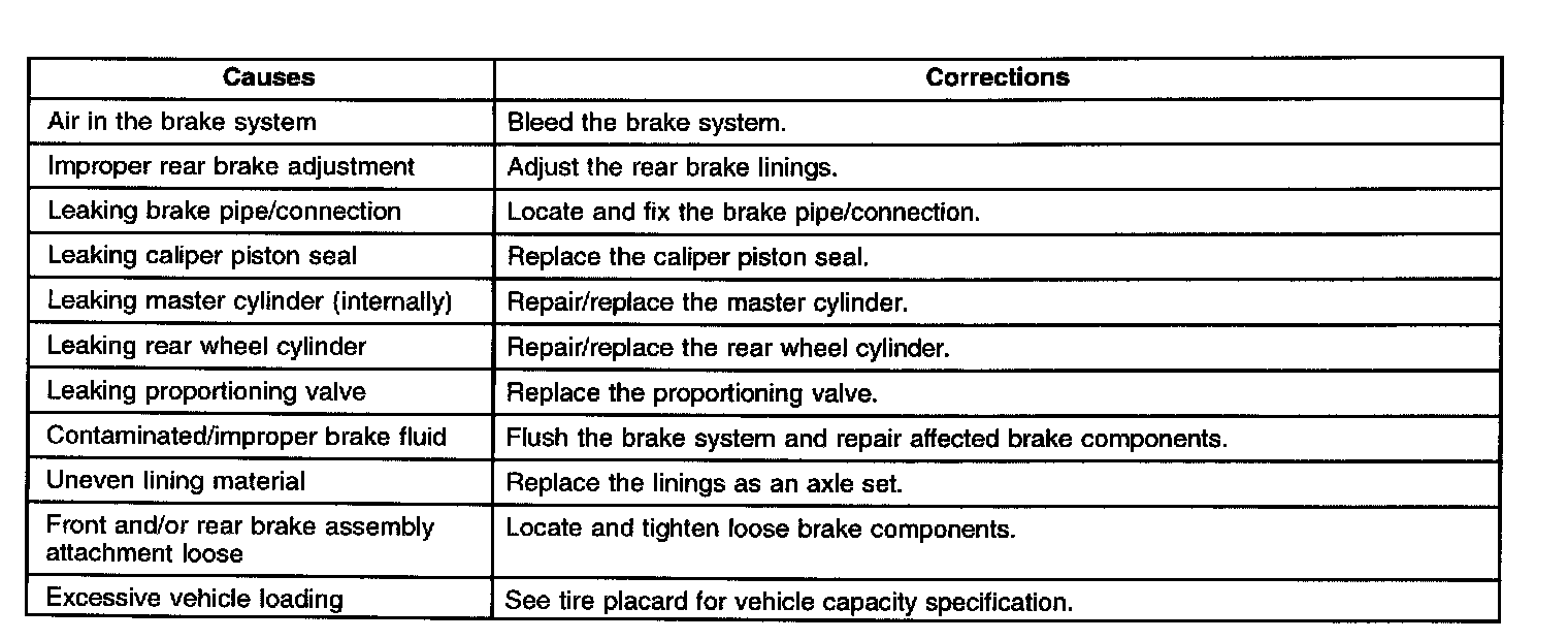 Brake Pedal Excessive Travel