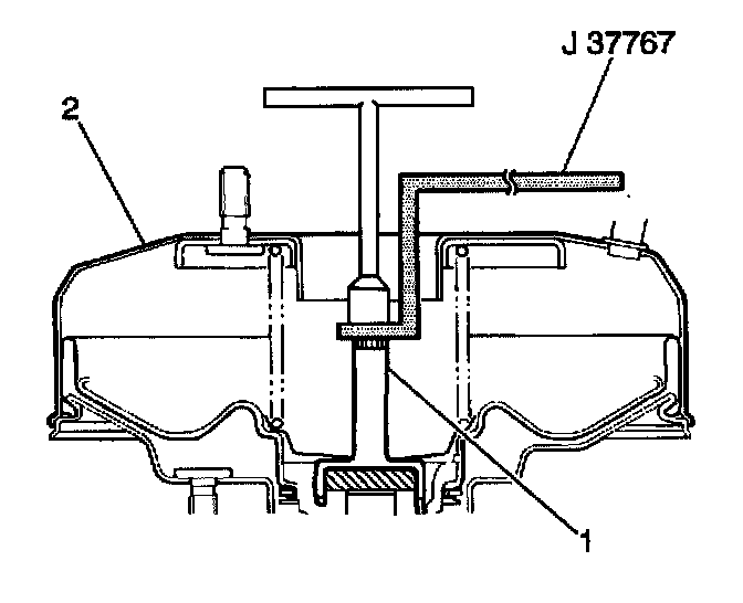 7. If the measurement does not equal the specification, use the J 37767 in order to hold the booster piston rod (1).
