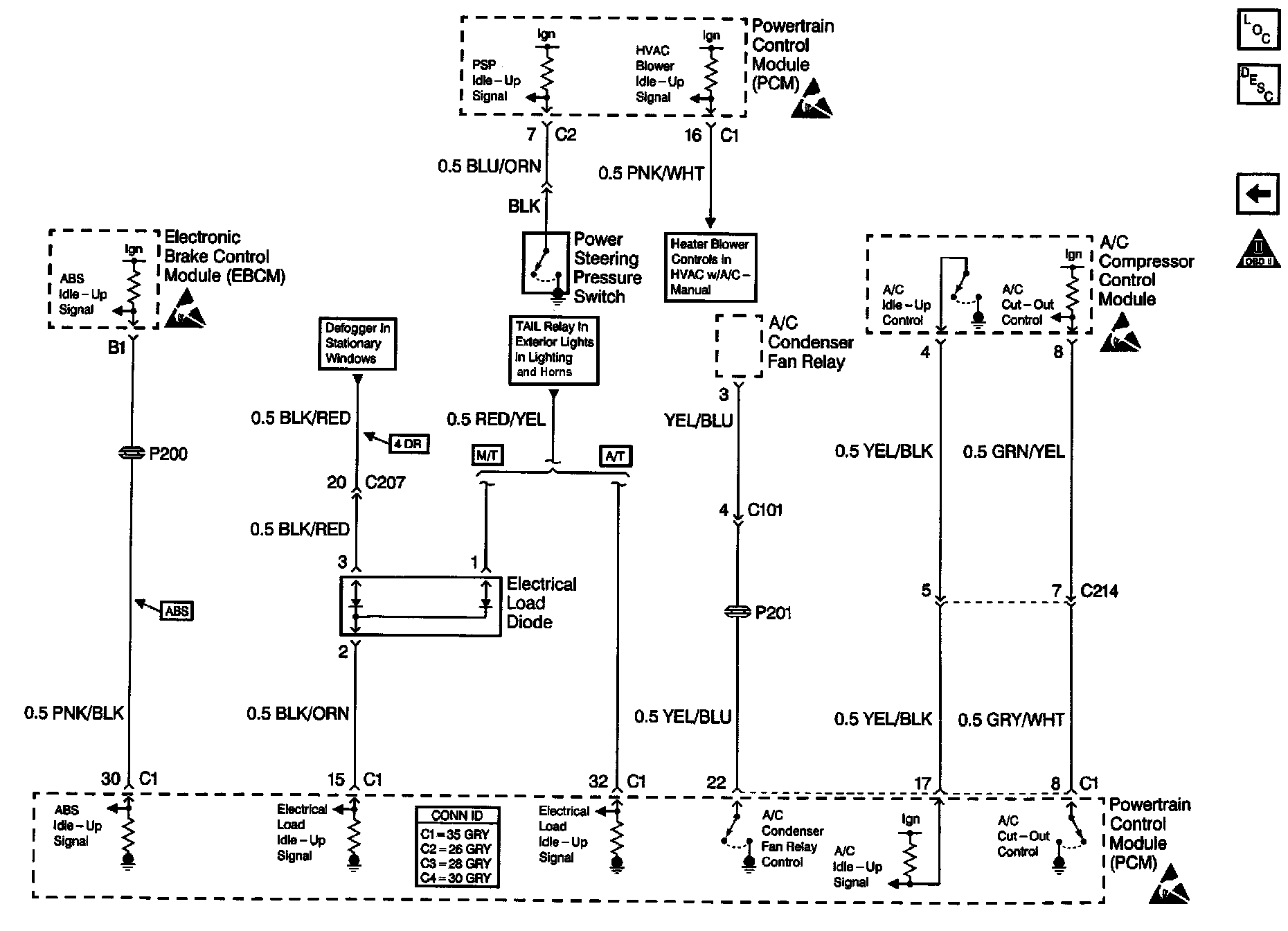 Engine Controls Schematics: A/C Controls and Idle-Up Signals: