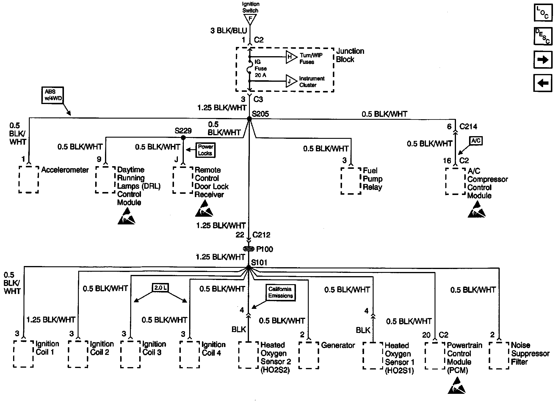 Power Distribution Schematics: Ignition Switch And SIR Fuses: