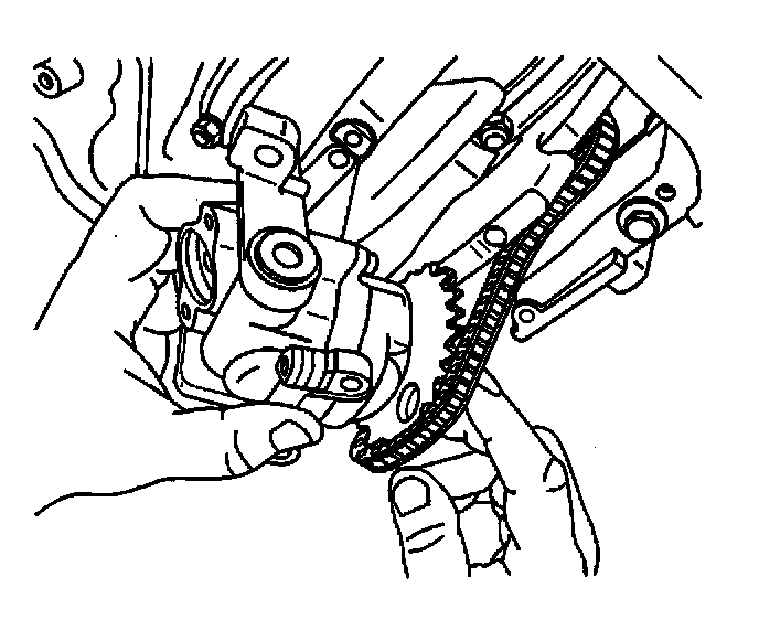 3. If necessary, remove the oil pump chain guide. The chain tension will have to be adjusted if the guide is removed or if the chain is replaced.