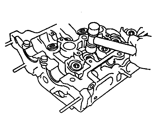 Caution: Compressed valve springs have high tension against the valve spring compressor. Valve springs that are not properly compressed by or released from the valve spring compressor can be ejected from the valve spring compressor with intense force. Use care when compressing or releasing the valve spring with the valve spring compressor and when removing or installing the valve stem keys. Failing to use care may cause personal injury.