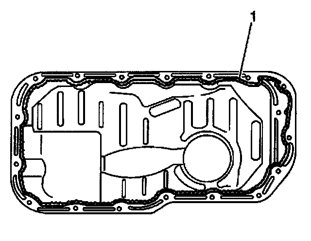 1. Apply a continuous bead (1) of silicon sealant GM P/N 12345997 or equivalent, to the engine oil pan mating surface.