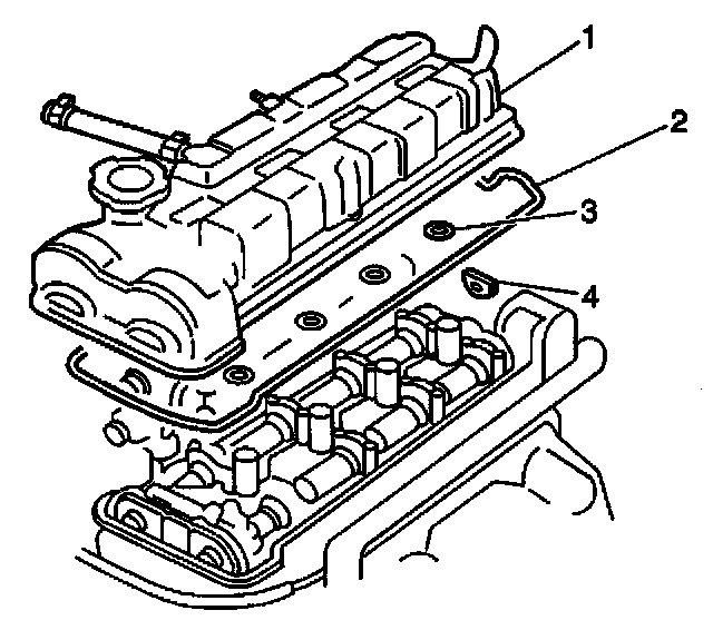 4. Install the 4 new O-rings (3) to the cylinder head cover (1).