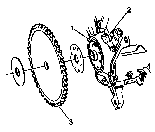 1. Align the flywheel-to-engine marks and install the flywheel (3) to the crankshaft (1).