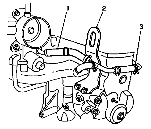 4. Remove the bypass hose (3) from the coolant outlet pipe.