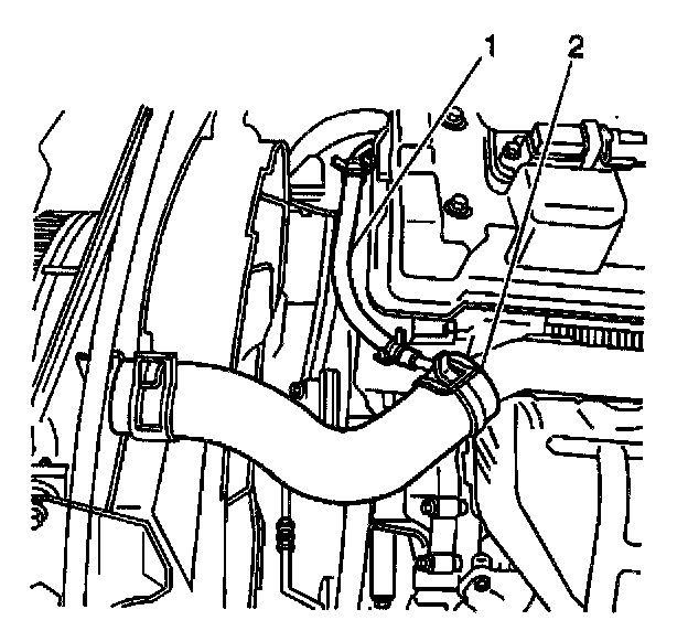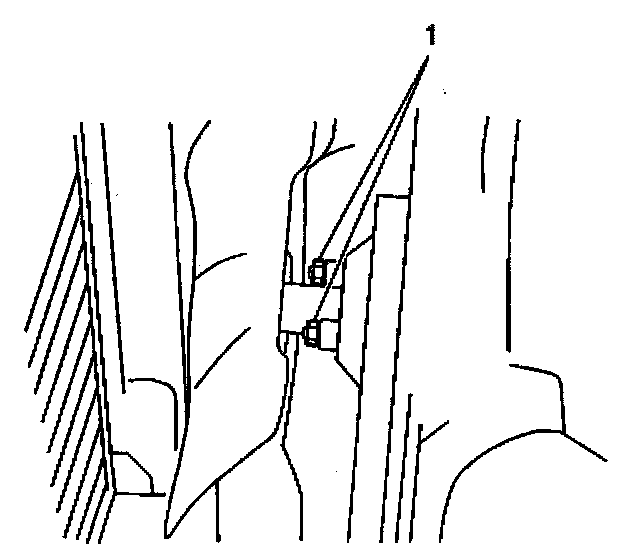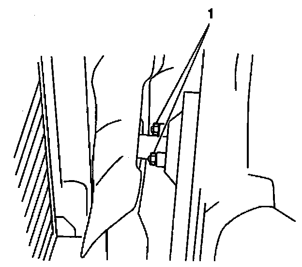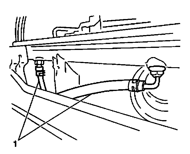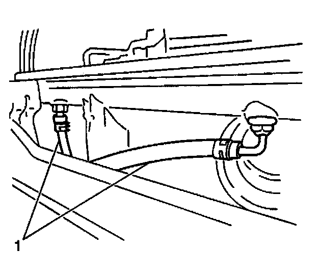 7. Remove the automatic transmission fluid cooler lines (1) from the radiator on automatic transmission equipped vehicles. Cap the open lines to prevent leakage.