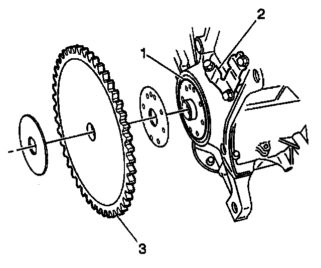 30. Remove the 2 tensioner mounting bolts (1,3) and the tensioner.