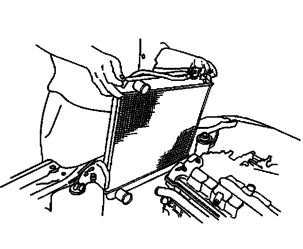 24. Lean the fan shroud toward the engine and lift the radiator up and out of the vehicle.
